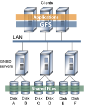 Figure 1-3. GFS and GNBD with Directly Connected Storage
