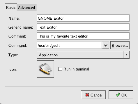 • Command: Enter the results of the which command (ex: /usr/bin/gedit).